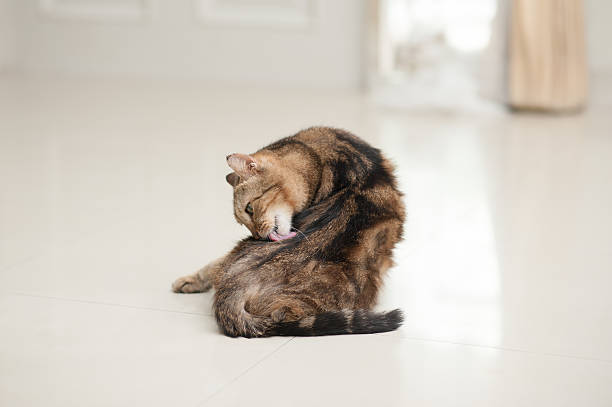 In cats, tail-biting can also be a response to medical issues, such as allergies, flea infestations, or even urinary tract infections that cause discomfort near the tail area. Another common reason for tail-biting in cats is due to their territorial nature. They may bite their tails as a self-soothing measure when they feel threatened by another animal, whether inside the house or outside.