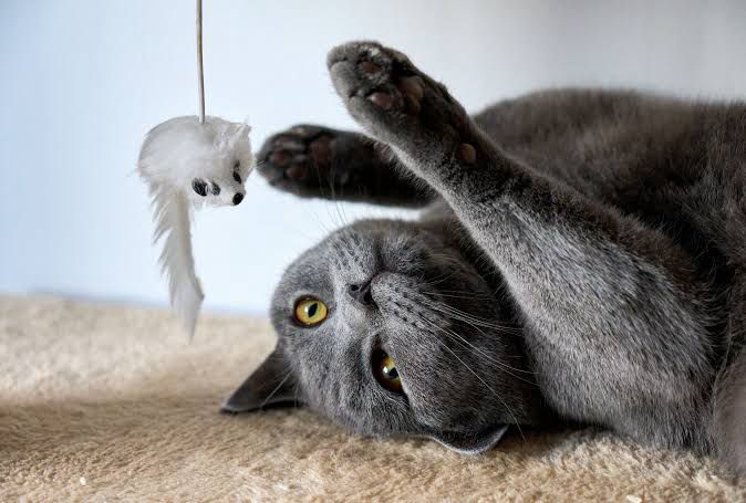 Engaging in daily play sessions with toys that mimic prey, such as feather wands or laser pointers, satisfies a cat's hunting instincts and provides exercise.
