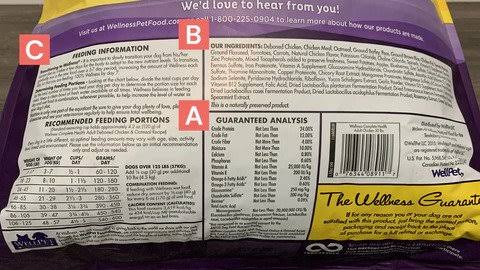 Pet food labels usually include the following key sections: