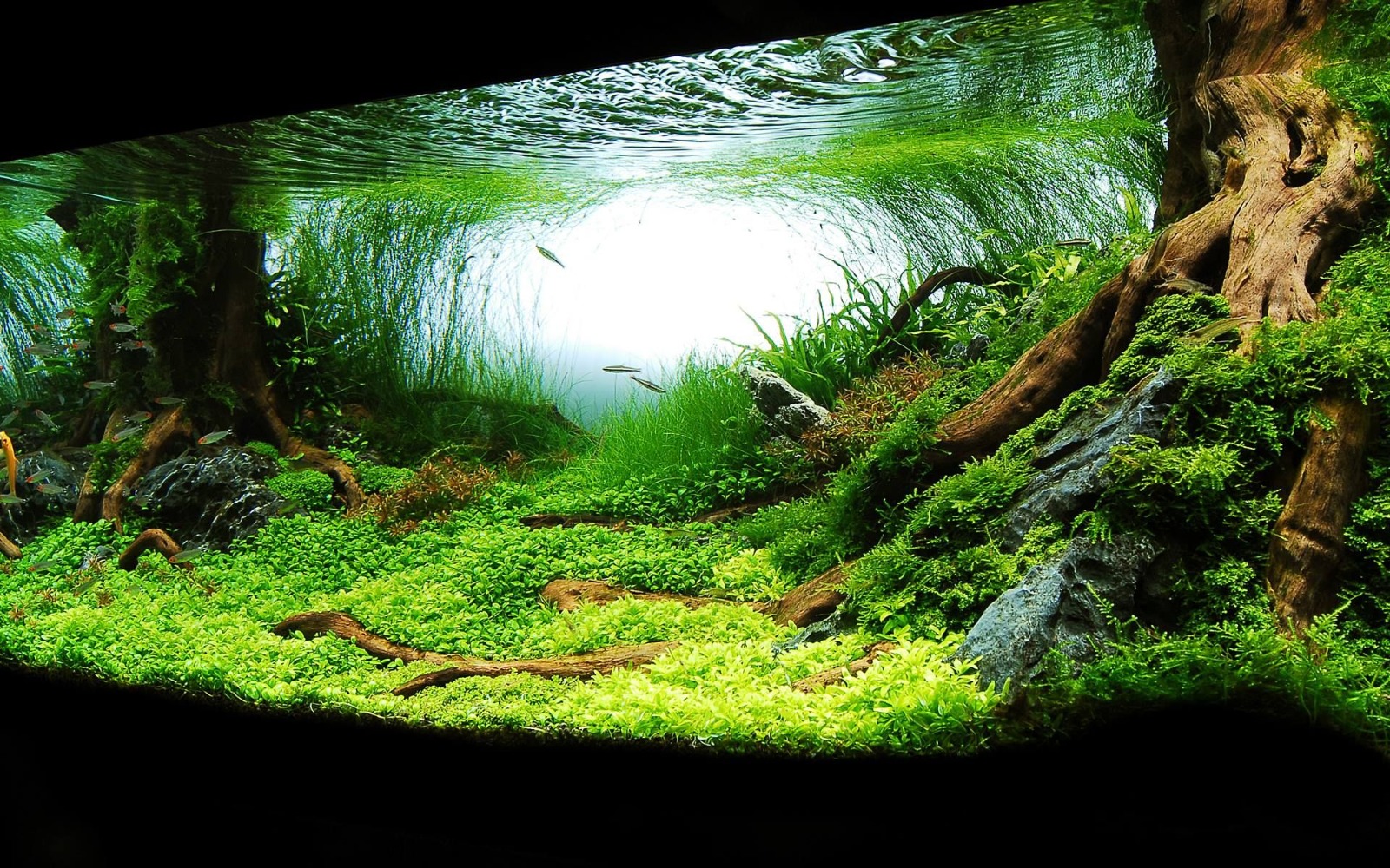 - Amazon Biotope: Driftwood, leaf litter, tannin-rich water, neon tetras.