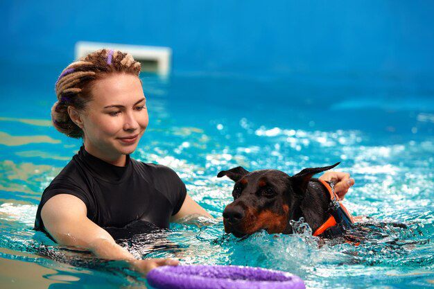 Swimming together offers numerous health benefits for both you and your pet. Here’s how it works for both of you: