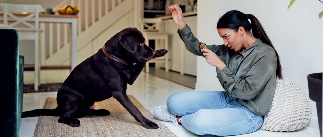 Positive reinforcement training techniques.